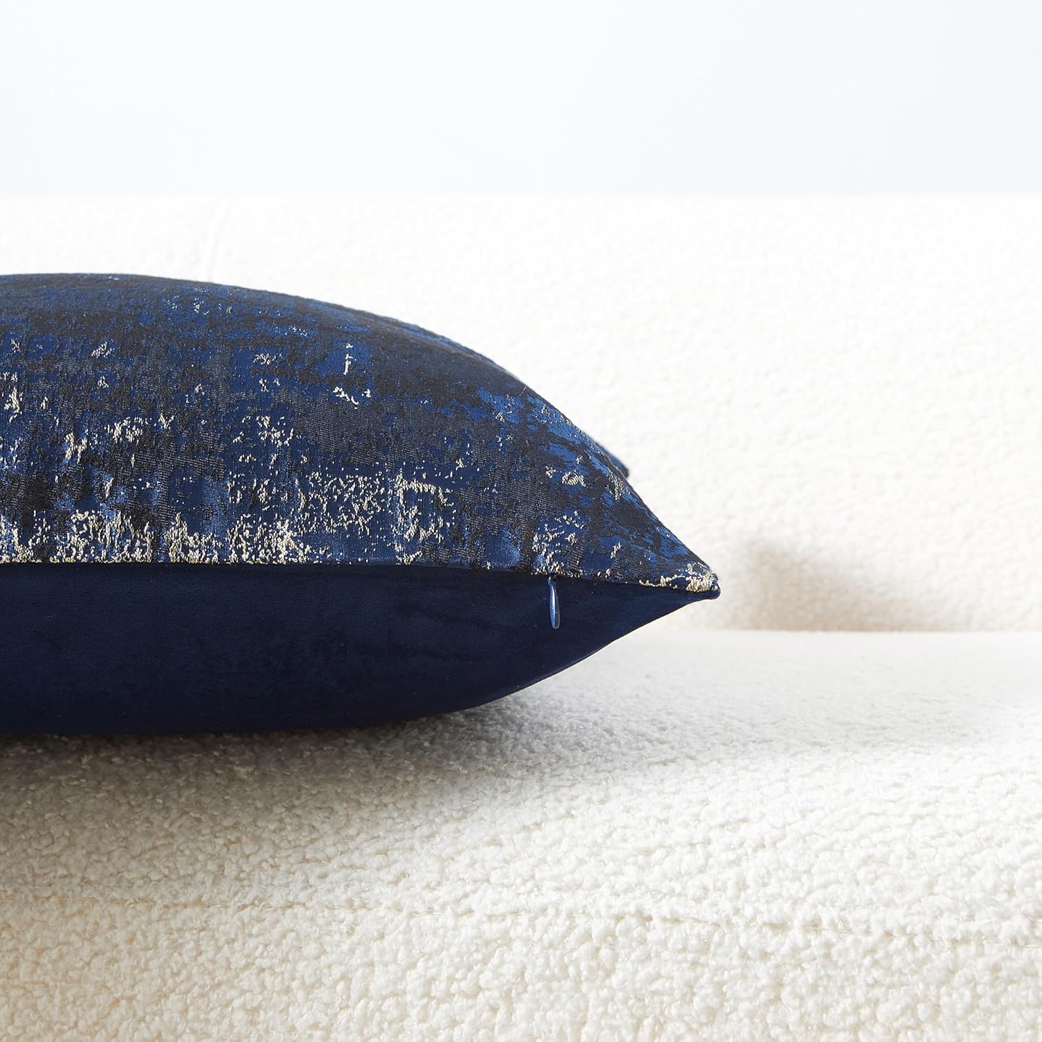 - Premium Jacquard & Velvet Pillow Cover : Crafted with 70% polyester 30% viscose jacquard weave (front) in navy gold, featuring a soft metallic gleam for a sophisticated textured effect. Reverses to 100% polyester navy velvet (back) for cloud-like softness. Two looks in one—instantly elevate your sofas, beds, or accent chairs.