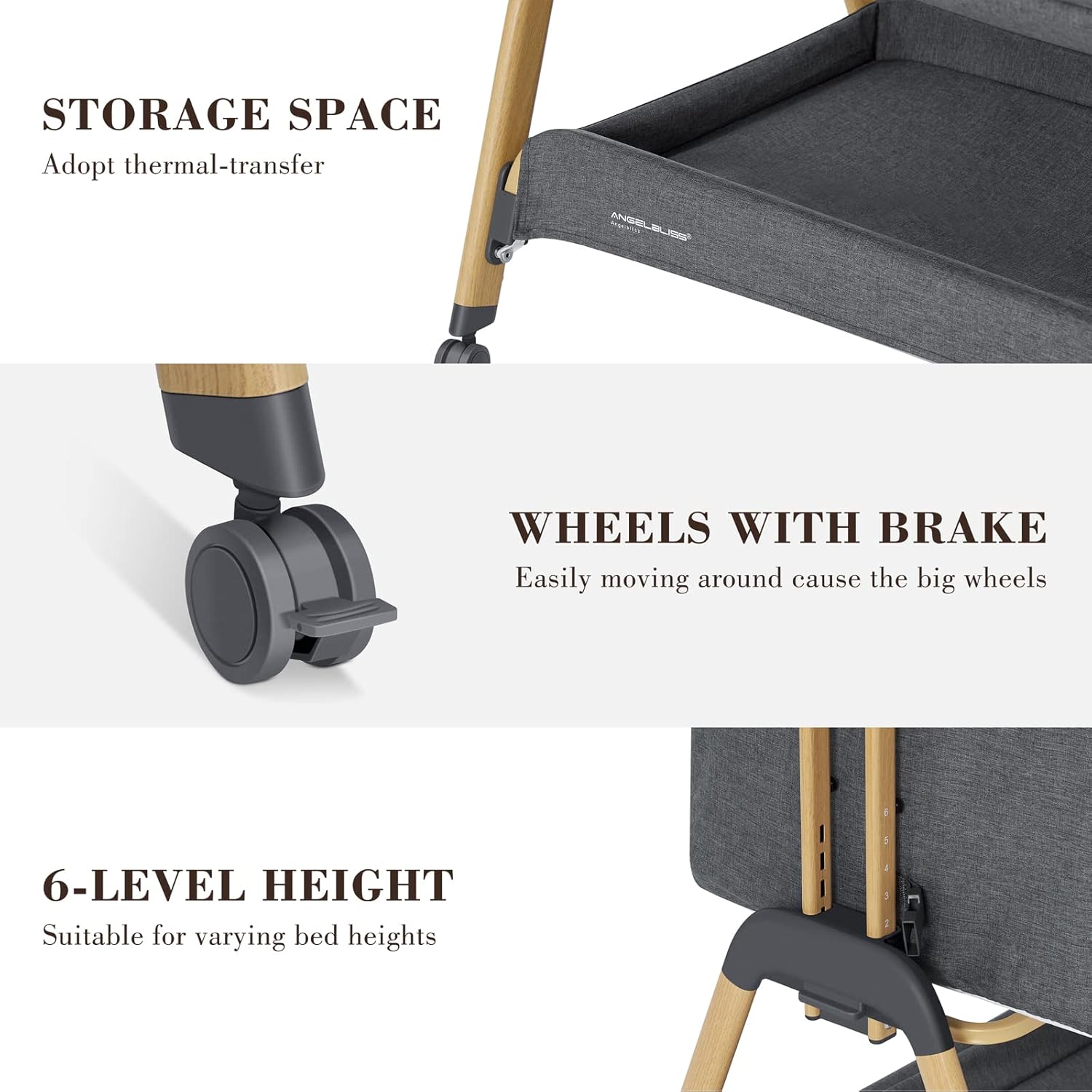 - Easy and Tool-free Assembly: It comes with a no-tool assembly & easy-folding mechanism means our baby bedside bassinet can be easily setup and dissembly. Four wheels with brake makes it easy to move the bassinet bedside sleeper from room to room.