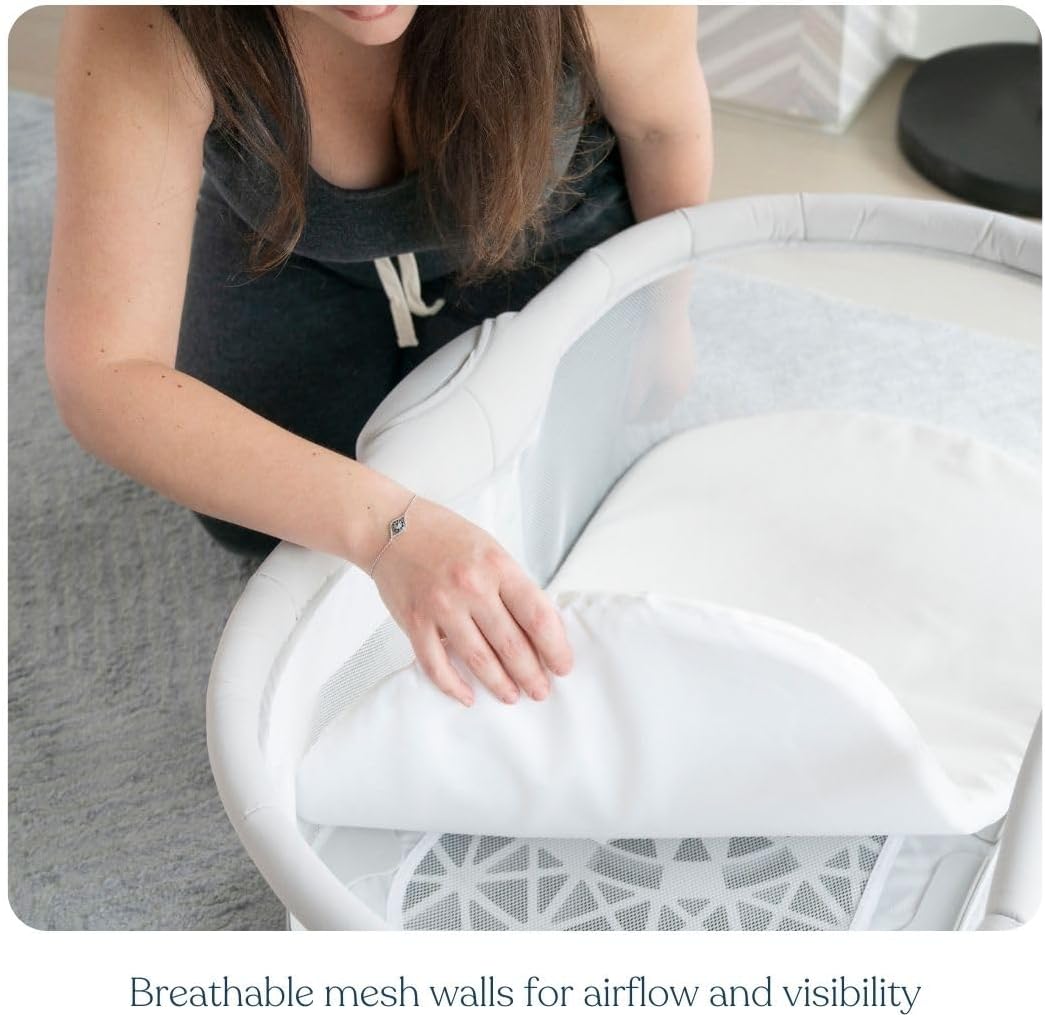 HALO BassiNest Soothing Swivel Sleeper 3.0S – Over-Bed Baby Bassinet with 360 Rotation, Adjustable Height, Breathable Mesh, Calm Sounds & Vibrations, Safe Close Sleeping, Lowering Wall for Easy Access