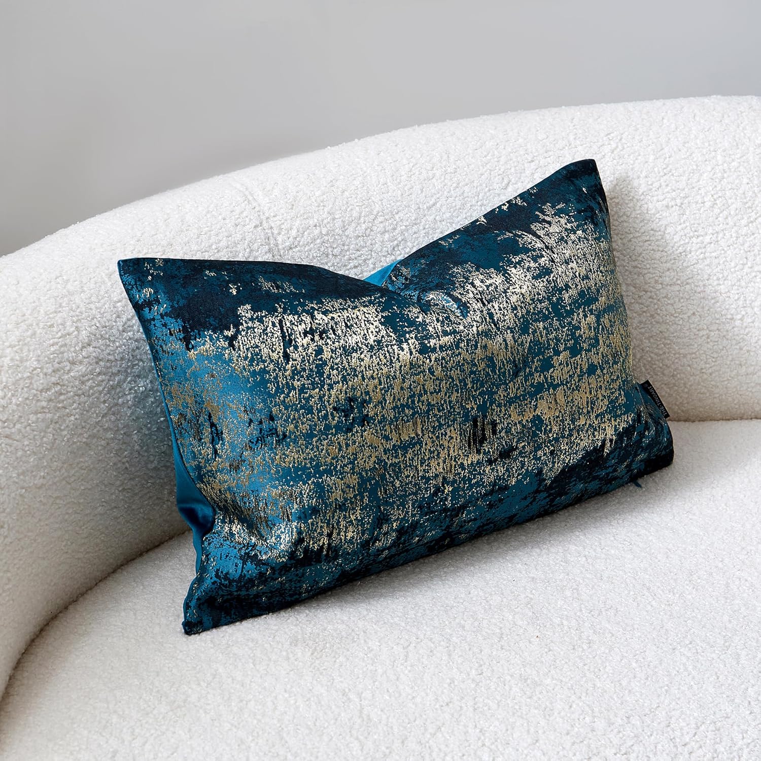 THE-TINOART Teal & Gold Embroidered Jacquard Pillow Cover 12x20 Inches – Luxury Reversible Decorative Throw Pillow Cover with Gold Thread & Velvet Backing, Elegant Holiday Home Decor
