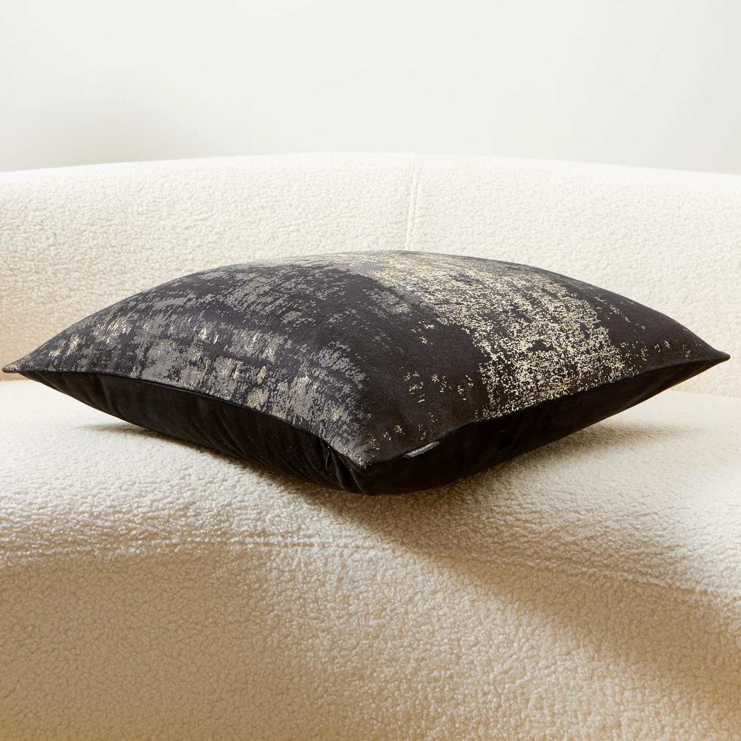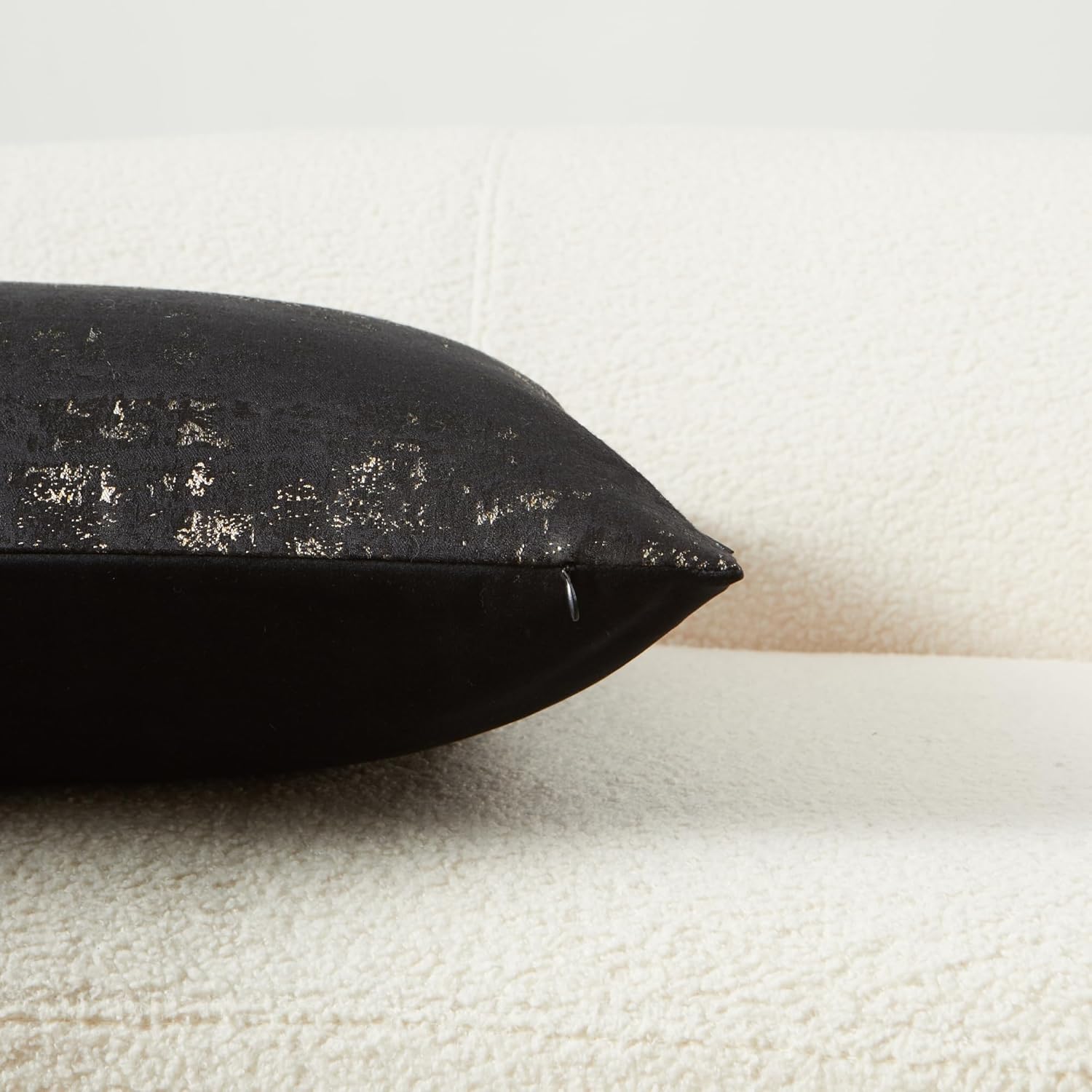 - Premium Jacquard & Velvet Pillow Cover : Crafted with luxe 70% polyester 30% viscose jacquard weave in Black & Gold - featuring elegant gold metallic threads woven through rich black fabric for a soft glowing contrast. The reverse features 100% polyester cream beige velvet in sumptuous cloud-soft texture. Two looks in one - Perfect for Luxury minimalist interiors seeking refined accents.