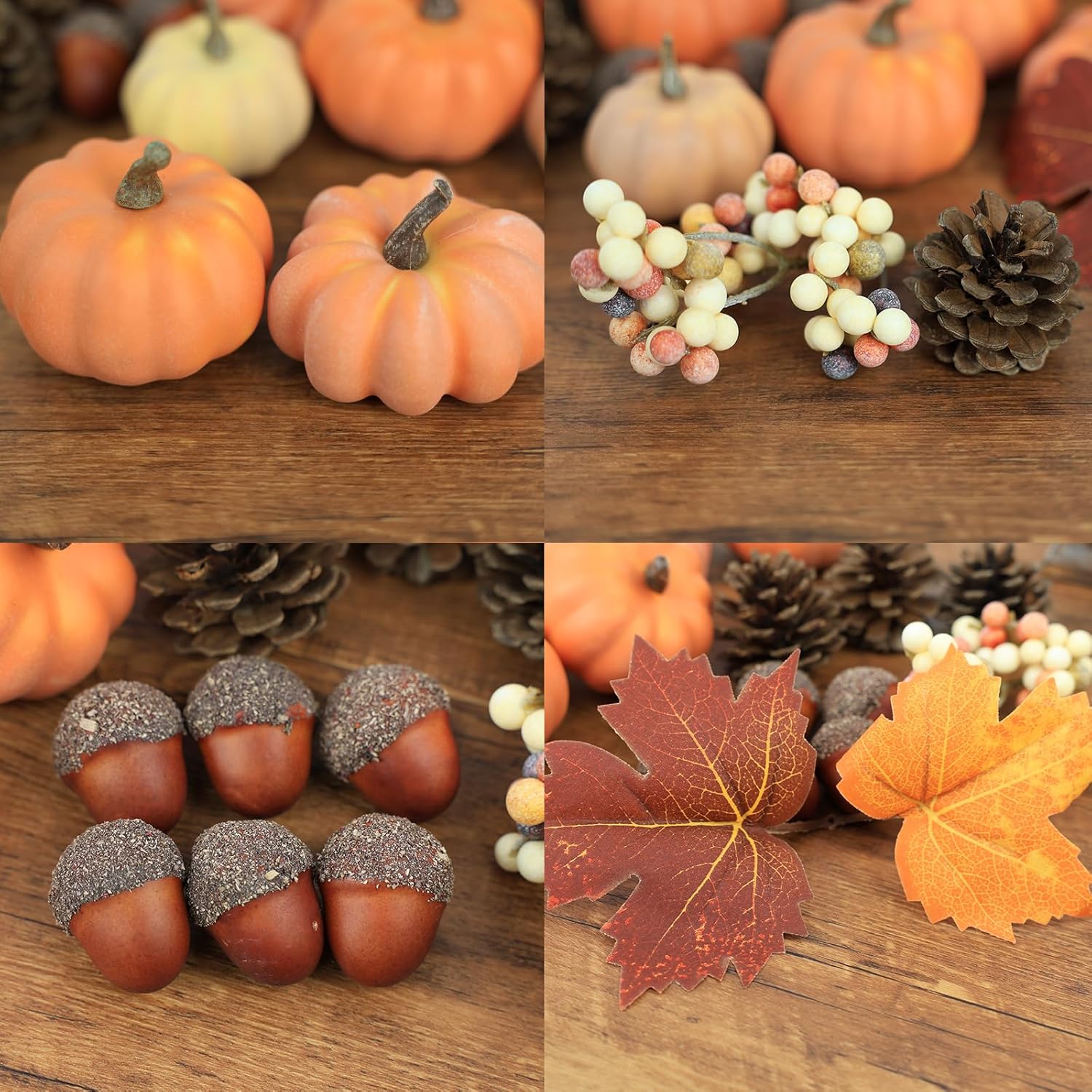 - ăPackage Includedă8 faux pumpkin, 6 acorns, 4 pinecones, 2 berries, 2 fake maple leaves. Total 22 pcs, covers all of your fall decorations for home needs.