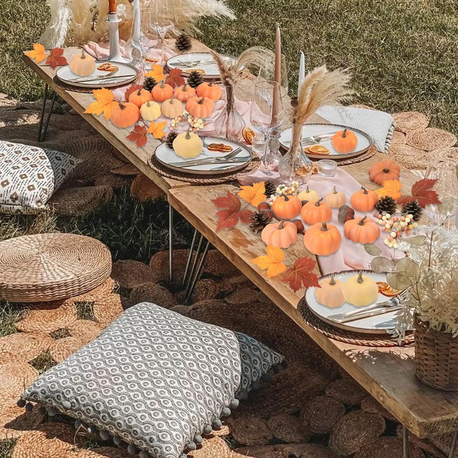 - ăAutumn DecorăArtificial pumpkin sets assortment of iconic autumnal embellishments, great for centerpieces, Halloween Thanksgiving party decorations, embellish wreaths, or as a basket and vase filler. You can use your creativity to decorate your home and fill your home with the autumn atmosphere.