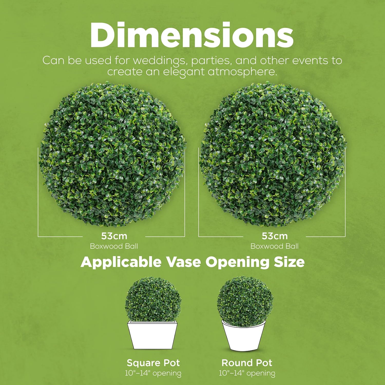 - VERSATILE DECORATIONS – Enhance any space with our high-density, faux boxwood balls. Perfect for the home, porch, or garden, they add low-maintenance greenery anywhere. Each measures about 20” in diameter.