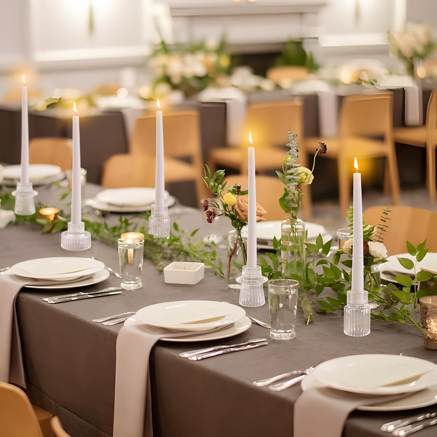 - VERSATILITY CANDLESTICK HOLDERS: Perfect as elegant table centerpieces, charming additions to your mantle display, or serene windowsill accents. These glass taper candleholders enhance ambiance for dinners, parties, or everyday relaxation. Their timeless glass crystal candle holder design seamlessly integrates into diverse settings